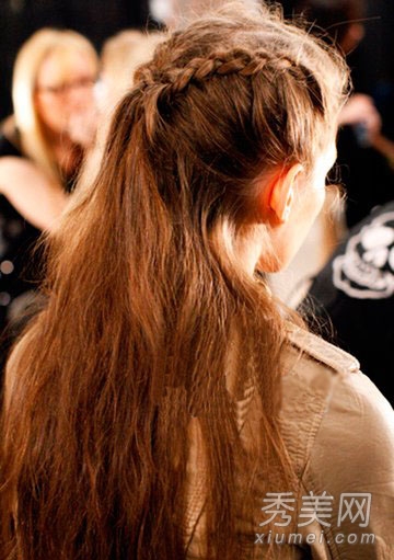 在秋冬季秀中,两边尺寸不对称的发辫也很抢手——一边的头发会聚集成粗发辫,另一边留一小束耳毛成小发辫。不同粗细的辫子给人一种慵懒、随意的感觉,非常文艺。