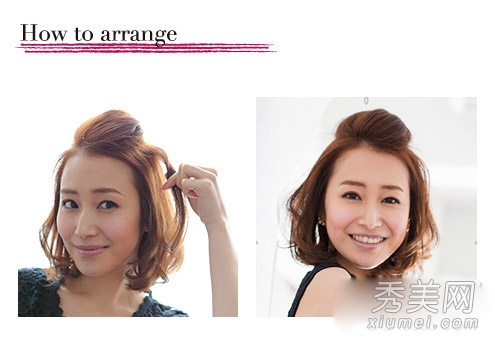 第一:浓密的斜刘海巧妙地修饰了脸型,半束的头发既别致又甜美,发饰也更加优雅。