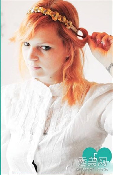 这种发型需要发带的帮助,过程也很简单,但是效果很漂亮,特别是不想被分发的MM可以试试。
