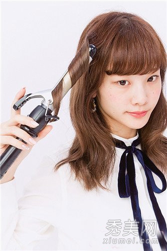 1.用一个25厘米的卷发器将头发从中间卷到末端。