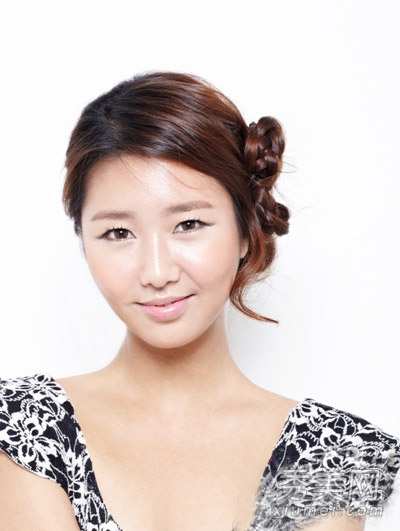 第五步:将底部的辫子拧成一个侧花玉米头,用发夹固定。