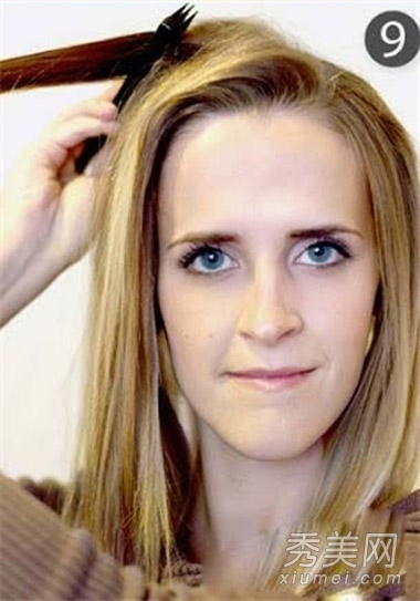 第八步:下一步是处理头发的前半部分。首先,如图所示,将头发的前九边分开,并整齐地梳理以获得边缘。