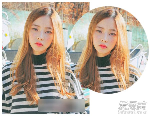 使用温暖明亮的橙色发色,一方面可以烘托女孩的肌肤白皙感,另一方面,也可以增添青春活力,用简单的发型演绎优雅的长发像时尚的眼睛。