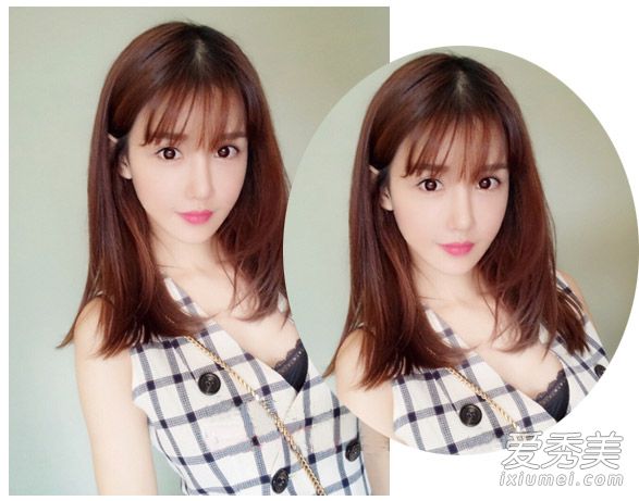 披肩中的长直发造型在光线下呈现出好看的淡黄色,中分发的气质被完美地修剪到适合脸颊,既可爱又可爱。