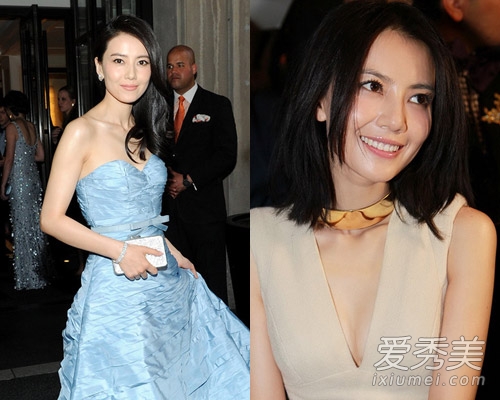 梁咏琪的长发真的很少见,加上刘海只能算是纯色,剪短发后,看起来很国际标准,斜刘海短发优雅自然。