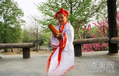 把学者的发髻系在毛茸茸的一英寸上难道不有趣吗?传统儒生的媳妇手里拿着竹简,把人们带回了1000年前的古韵。这就是这些人想要做的,以发扬中国服装。传统文化的复兴应该从娃娃开始。