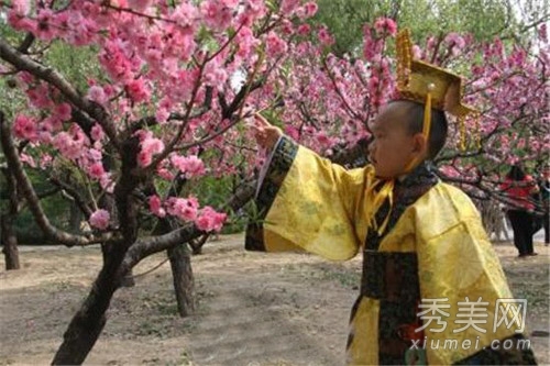 北京植物园最近再造了一个牛人。一个穿着黄色长袍和中国服装的年轻人在桃花树下拍照,这很受欢迎。然而,他很时髦。戴着这顶帽子的圆头非常可爱。我真的很佩服父母现在的想法。