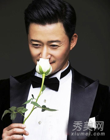 黑色燕尾服,白色领结衬衫,霸气的后发型凸显成熟优雅的男子气概。