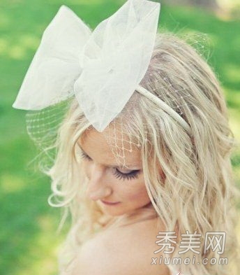 它和以前的发型非常相似,只是这个发型只需要剪下少量刘海,稍微固定在头上,然后用一个用莱茵石装饰的纱布头饰盖住。