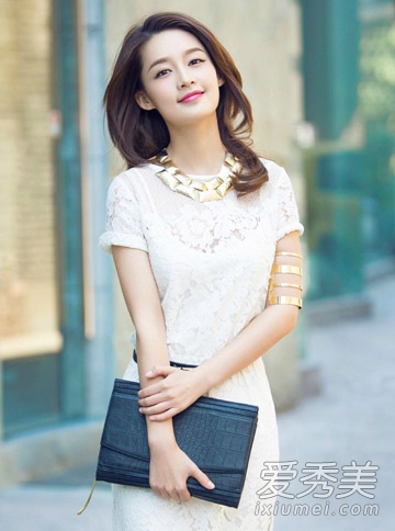 生活中甜美的发型将刘海变成了辫子,固定在脑后,露出简单清新的前额,披肩的卷发与白色连衣裙搭配,甜美而纯净。