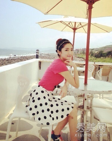 刘海在中间,长裙和衬衫,清新明亮,显示出一种淑女气质。