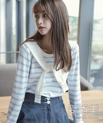 清新的长直发风格,亚麻长直发搭配长袖衬衫,非常纯净悦目,学术风格尤其适合秋季,微卷空空气刘海搭配更显可爱气质。