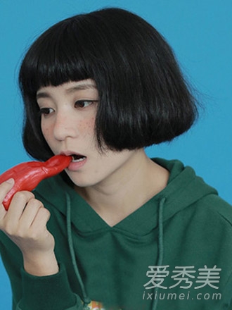 一种日本短发,具有傻气的气质,蓬松的刘海短发非常适合大脸型的女孩,而内发型则设计得清新而薄。