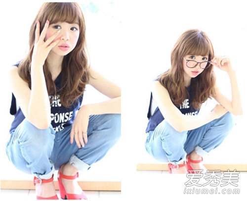 同样是厚空气的刘海,显得MM的眼睛又大又生动,非常可爱,再加上卷曲的长发和浅棕色的染发,既时尚又瘦脸,而且防老效果好。