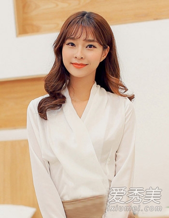 刘海留长发的女孩清新淡雅的风格也是清新潇洒空齐琦邦奇风格,而搭配温暖的棕色染发和简单的小卷发式留长发更是温柔优雅,同样引人注目。