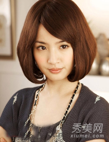 女孩短短的栗色头发,充满甜蜜的感觉,在夏天看起来阳光明媚,迷人,她的侧刘海被整齐地修剪成精致的V形脸,黑框眼镜充满文学和艺术