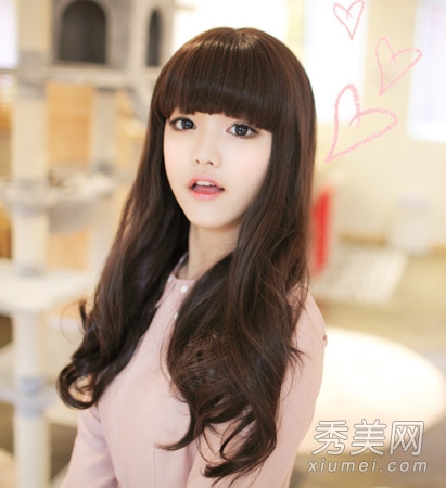 中间的黄色长卷发感觉很温暖。中间的长卷发非常适合圆脸大脸的女孩。它能盖住肉,达到小脸的效果。