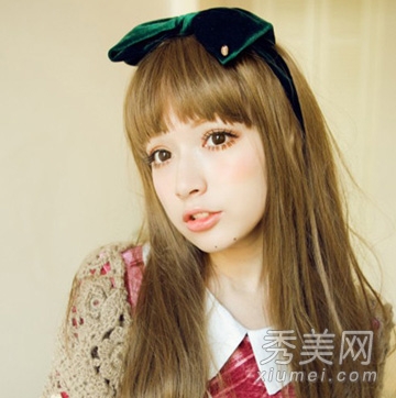 长发烫发,留着整齐的刘海,染成亚麻棕色,可爱而衰老。