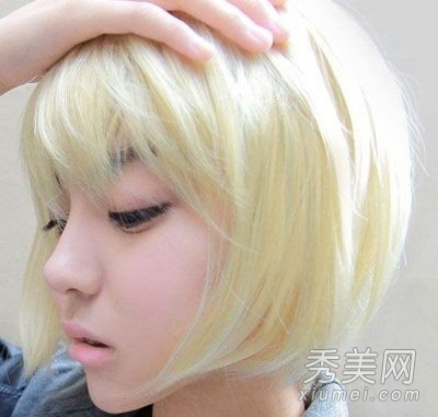 非常白的亚麻色现在受到越来越多女孩的欢迎。这种侧波头非常女性化。