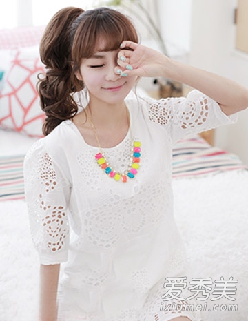 可爱的马尾辫发型,充满水分和朝气蓬勃的青春气息,马尾辫卷发设计,更增添了一点时尚感。