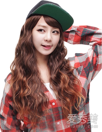 可爱的长发卷发,可爱的帽子,清凉的连衣裙,非常适合春夏发型。