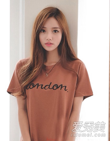 韩式长卷发的气质和黄褐色的发色点缀完美地展现出别致的时尚感,偏分更清新的淑女造型,造型简单大方。