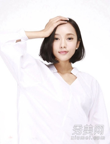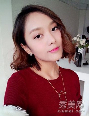 纯椭圆形的脸型,短卷发,时尚复古的感觉,棕色的发色衬托出白皙柔嫩的肤色,淡淡的微笑安静而优雅。