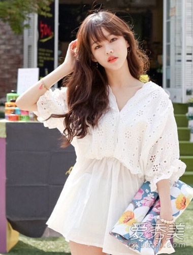 韩式卷发造型图2,韩剧中有很多小女孩,可以为你实现更有规律的韩式烫发,刘海在一边,刘海翻出来,既有女人味又有知性甜美的感觉,一边的头发拉在耳朵后面,性感又有女人味。