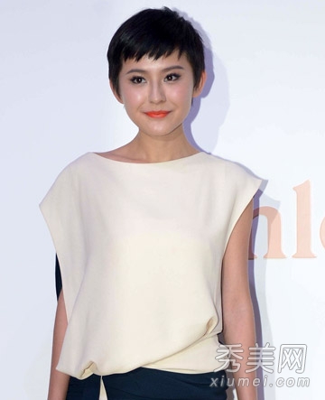 女演员王最近转向武术系列,觉得自己更有能力。她留着短发,穿着黑白相间的连衣裙。她清新动人。蓬松的空气体刘海显示更小的脸,更自然地盖住脑门。