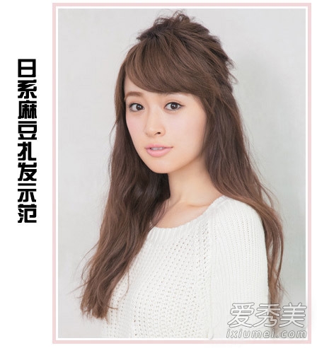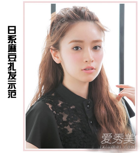 发型评论:不喜欢刘海的MM可以试着把刘海绑在一起,把刘海和脸颊旁边的头发卷成辫子,固定在耳朵后面,这样就可以展现出一张新面孔。微微卷曲的头发甜美俏皮。