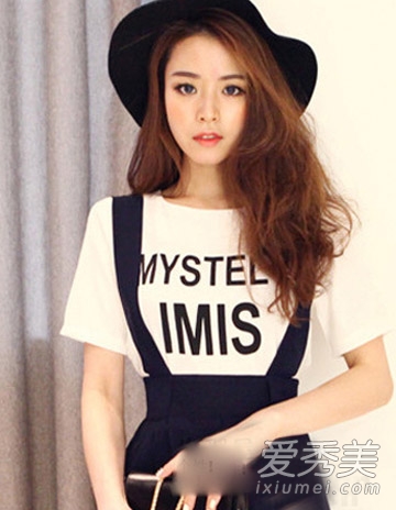 这是2015年流行的长发风格,展现了女孩清新、慵懒的气质。蓬松的长发烫发设计与温暖的棕色和黄色头发颜色相匹配,但却是女孩最迷人、最慵懒的风格。黑色的帽子更时尚。