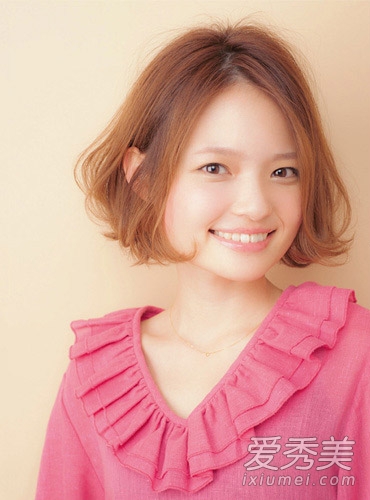 发型点评:棕梨花头短发甜美迷人,饱满厚实的烫发效果显示出少女般的甜美气质,艳丽的发色让年龄减少五岁以上。