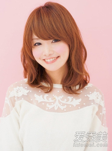 发型点评:发丝中间的刘海点缀着精致的瓜子脸,内扣的刘海扣着可爱俏皮的气质,蓬松的棕色梨花头更甜美,更能延缓衰老。