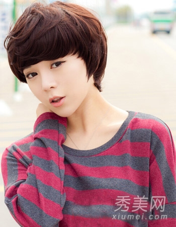 短发款式可分为多种,这款齐肩短发款式,头发颜色染成深棕色,时尚而不招摇,略卷曲蓬松的头发,时尚而清新的气质,斜刘海护理更修剪哦。