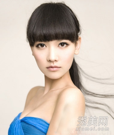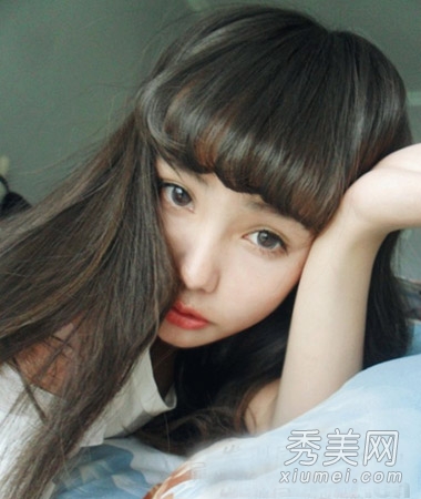 修剪整齐的平刘海衬托出一双充满灵气的大眼睛,清晰生动,给发型注入甜美可爱的元素,俏皮活泼。