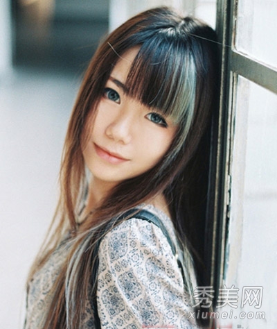 脸颊断裂的直发甜美可爱,棕色头发,红润白皙的肤色。刘海斜斜,修剪整齐,看上去无比纯净甜美,但却不失邻家女孩的精致和美丽。