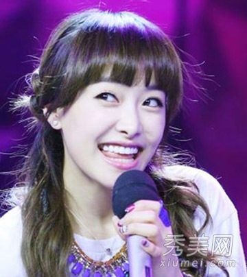 韩伟的斜刘海就像是一种新的齐肩长发MM的束发方法,而侧开的斜刘海很容易编织,并与棕色头发搭配,展现白皙柔嫩的肌肤。