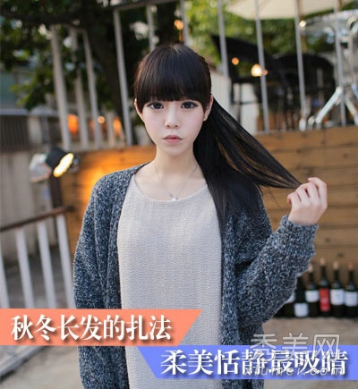 浓密整洁的刘海搭配简单的直发领带发,既甜美又利落。