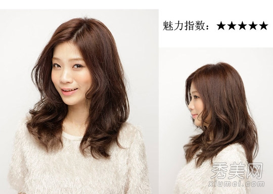 侧分空齐感卷发有明显的瘦身效果。棕色染发提升时尚感,与肤色相匹配。