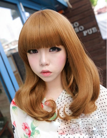 这是一种非主流的中长发风格。如今,90后姐妹们更喜欢这种发型,黄色的头发颜色温暖而显眼,浓密的刘海一丝不苟,卷曲的大发梢上有内扣,所有这些都没有表现出女孩的可爱和甜美。