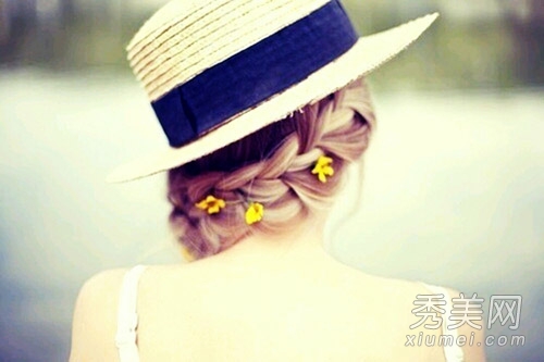 金色是外国人的发色,但今天的时尚女孩也能保持这种发型。迷人的白色发型,点缀着可爱的花朵,与田园风格的帽子很相配,非常优雅。