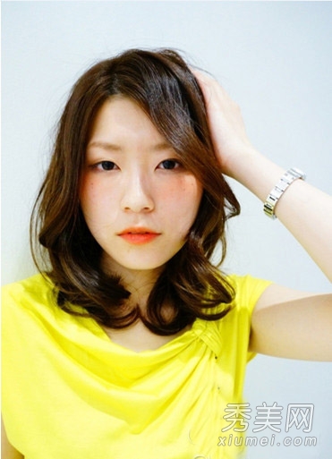 斜刘海起到突出小脸的作用,而这蓬松的短发看起来清新而年轻。
