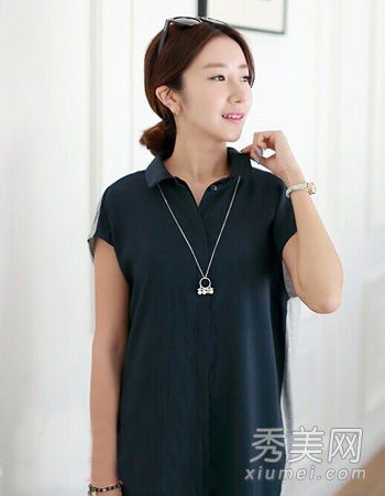 这种白领短发扎法既干练又清新,短短的黄棕色头发在脑后扎成一个小马尾辫,露出耳朵和清新的五官。它非常整洁。