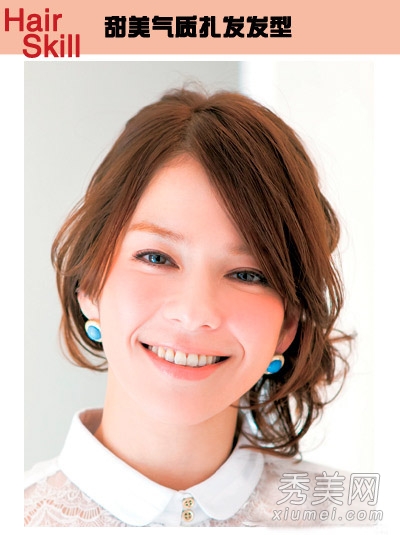 推荐理由:斜刘海卷曲成简单的形状,略显凌乱的发型让你的头更丰满。耳朵饰有两只蓝宝石耳环,优雅而高贵。