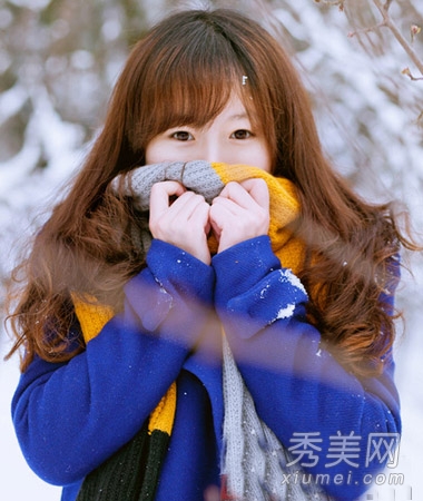 斜刘海有长长的卷发。韩式鲜挑染烫发是最白最嫩的。长刘海的头发最能装饰胖圆脸。蓬松的发卷自然带出优雅的气质。